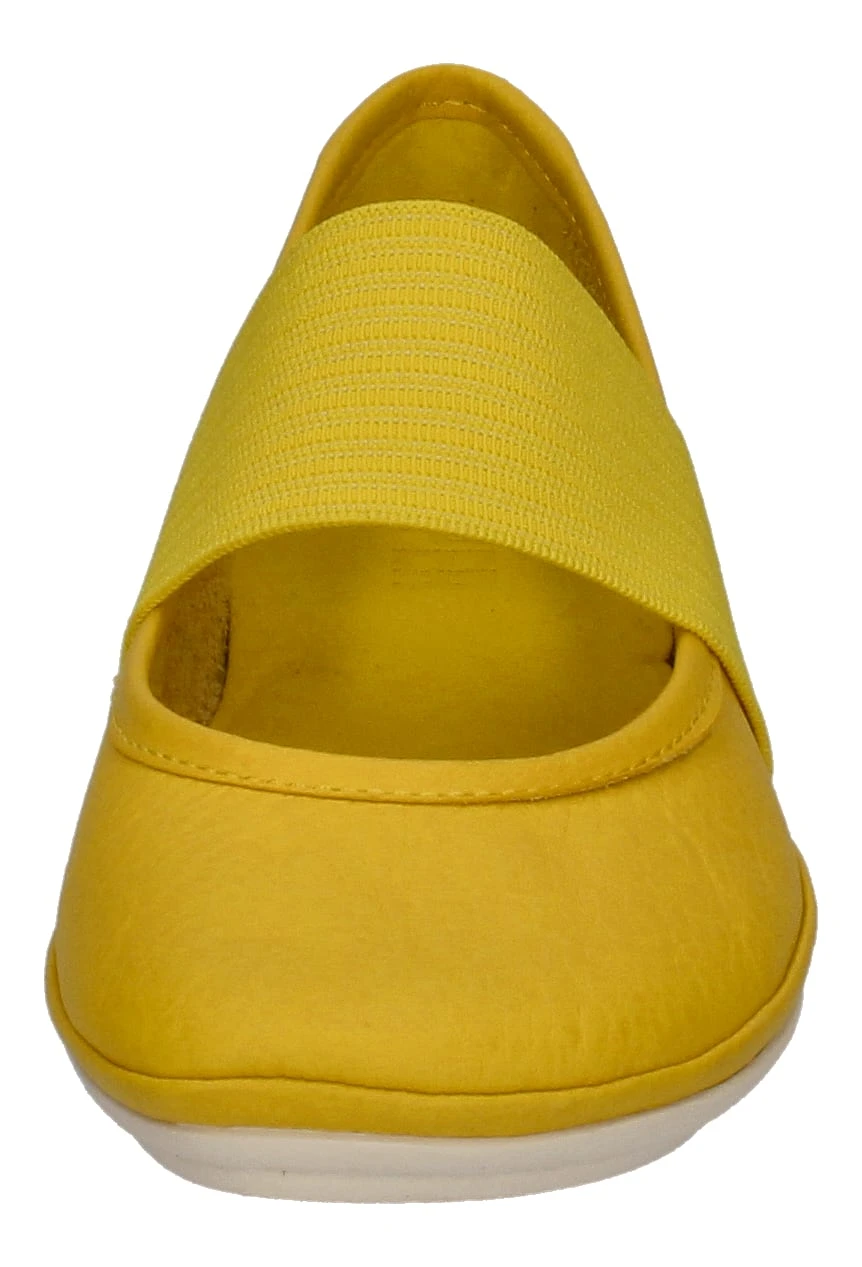 Die Ballerinas RIGHT NINA 21595 in gelb der mallorquinischen Marke CAMPER sind absolut bequem und natürlich von allerbester Qualität. Der Damenschuh wurde aus super weichem und geschmeidigem Leder gefertigt. Für bequemen Tragekomfort und Halt sorgt ein breiter elastischer Riemen über den Spann und zusätzlich punktet der Camper Schuh durch Flexibilität, Haltbarkeit und zeitlosen Design.