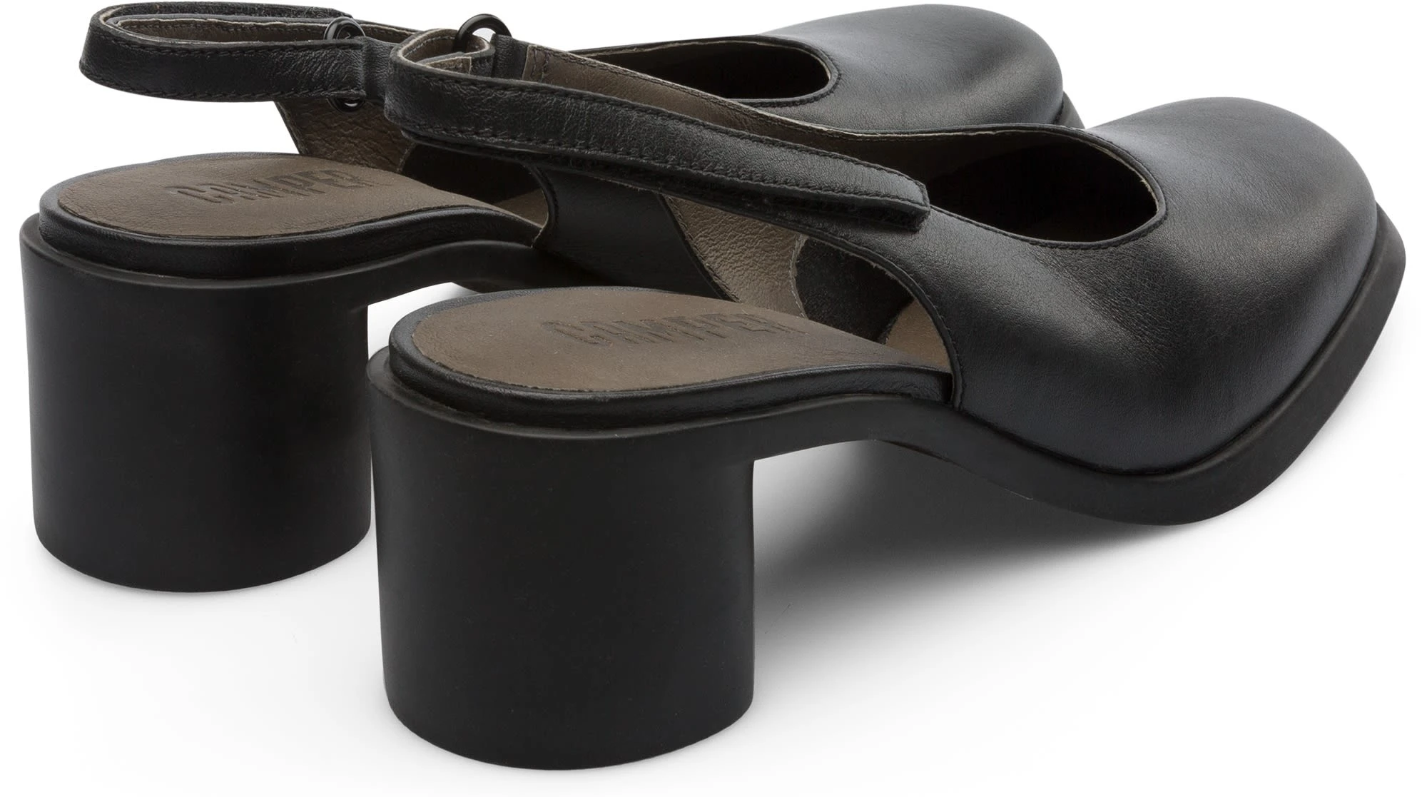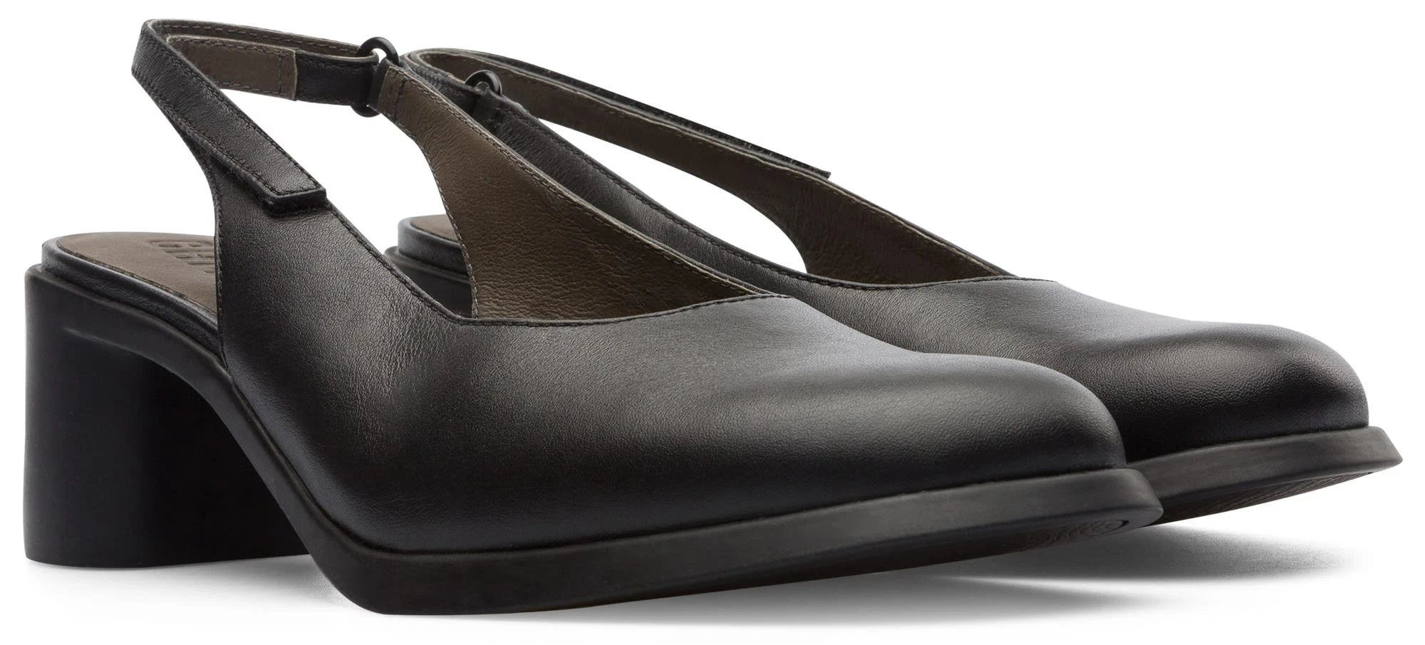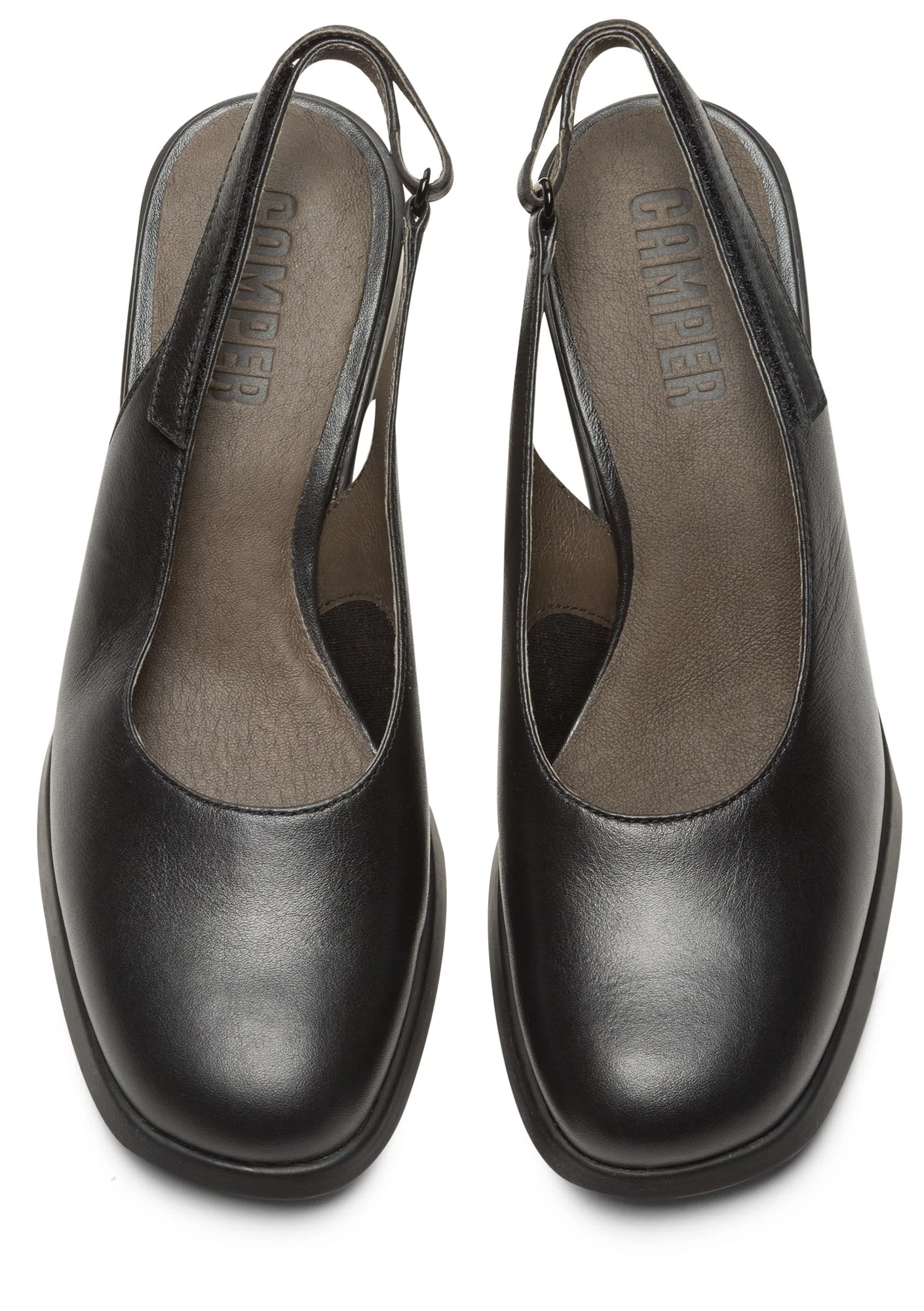 Slingback mit offener Zehe für Damen in Schwarz. Vollnarbenleder und Gummi-Laufsohle.