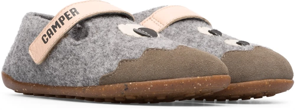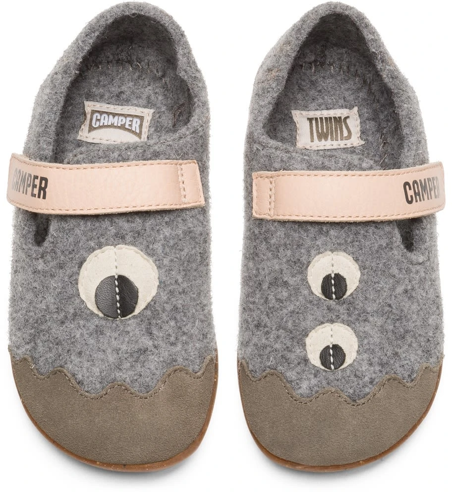 Slipper TWINS für Mädchen in Grau mit Warmfutter und Gummi-Laufsohle.